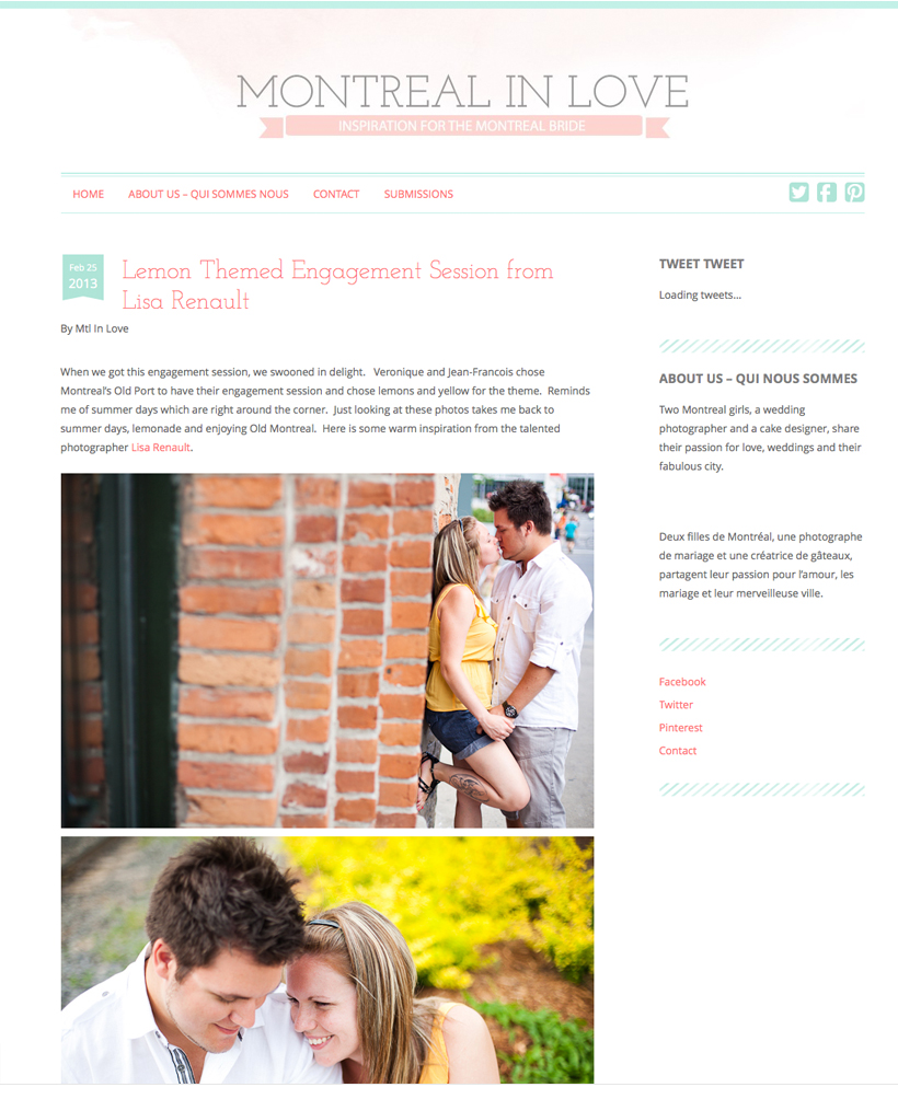 Il y a quelques temps, je vous ai présenté une jolie séance sur le thème des citrons avec un couple adorable, vous vous souvenez ? Et bien, la voici publiée sur le blog Montreal in Love, où vous pourrez voir l’article complet. Bonne journée à tous !